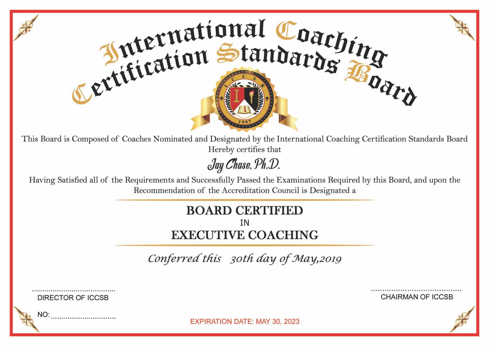 The International Coaching Certification Standards Board is the oldest board certifying organization for coach specialties. The ICCSB was the first to “board certify” coaches and is recognized internationally for the highest standards of its members.